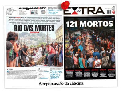Cabeça arrancada. Tiros na nuca. Pulsos amarrados. Mais: com 132 mortos, 113 suspeitos presos, 91 fuzis, duas pistolas e 11 motos apreendidos. Uma operação executada por Polícia Militar e Polícia Civil. Duas instituições do Estado. Zona norte. Já é a mais letal da História da República. O Carandiru do Rio de Janeiro. Verdadeiro derramamento de sangue. Vil.