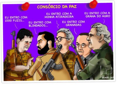 Primeiro, Flávio Bolsonaro pede um bombardeio a Donald Trump, narra. Segundo, um pacto de governadores sai em defesa da barbárie, enumera. Terceiro, arquitetura do caos programa se contrapor às negociações da União, fundadas na defesa da soberania, com a Casa Branca, coloca em debate. Qual será a próxima cartada?, ele pergunta.