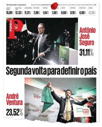 No primeiro turno das eleições presidenciais em Portugal o socialista Antonio José Seguro, ex-secretário-geral do Partido Socialista (PS), de centro-esquerda, ficou em primeiro lugar, com 31,1% dos votos. André Ventura, o candidato do Chega (CH), partido da extrema direita, foi o segundo mais votado, com 23,5%. do total. A ascensão quase meteórica da extrema direita em Portugal pode ser constatada comparando a votação alcançada pelo CH nas eleições legislativas de 20019, correspondente a 1,29% dos votos, que lhe garantiu apenas um deputado na Assembleia da República, com os 22,8% obtidos nas legislativas do ano passado. Hoje o Chega tem 60 deputados na Assembleia da República (segunda maior bancada) e foi o terceiro partido mais votado nas legislativas de 2025. Ainda assim, sua ida ao 2° turno das presidenciais surpreendeu.