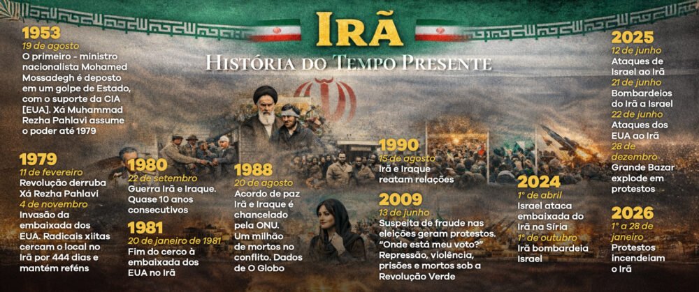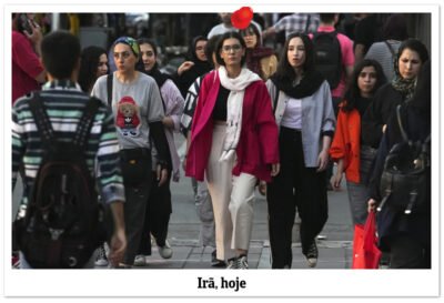 O Irã tem cíclicas crises sobrepostas, ela emite o seu parecer. Como mostram a História e os indicadores, ressalta. As suspeitas de fraude nas eleições de 2009 sacudiram o País, recorda-se. A Revolução Verde proclama “Onde está o meu voto?”, ela se lembra. A tensão e a fratura do Irã permanecem. Mahsa Amini, em 2022, jovem mulher de 22 anos, presa por causa do véu pela Polícia da Moral, hospitalizada após os maus tratos, morre já dois dias depois e Teerã volta a pegar fogo, conta. Sob os protestos de 2026, Ali Khamenei ameaça, ela afirma. “O Deus dos anos de 1980 retornará,” ele anuncia. Em explícito tom de retomada da repressão política aos dissidentes do regime teocrático xiita, condena.