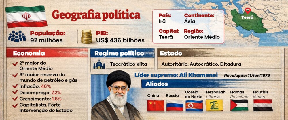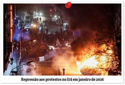 Os protestos de 28 de dezembro de 2025 a janeiro de 2026 começaram no Grande Bazar de Teerã, descreve. É o coração do mundo do trabalho, da economia de subsistência, conceitua-o. No local, o colapso não poderia mais ser escondido, avalia. A crise acende uma faísca, resgata. O Irã estava pronto para explodir, narra. Crise, pobreza, humilhação chegam ao ponto de ruptura, examina. “As manifestações se espalham em velocidade: 400 cidades”. Iranianos foram às ruas de mãos vazias, conta. Não carregavam armas, garante. Não queriam violência, só direitos sociais, políticos, humanos, afirma. “O Estado corta internet, desliga linhas telefônicas e impede conexões com o mundo”.