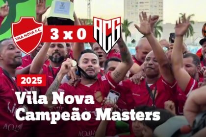 Renato Dias Após golear o Atlético Clube Goianiense, velho adversário, por 3 X 0, o Vila Nova deu a volta olímpica no Estádio Pedro Ludovico Teixeira [Olímpico] e sagrou-se campeão masters edição de 2025. Os gols do Tigrão, time que sufocou o Dragão desde o início da decisão com a marcação alta, foram anotados por...